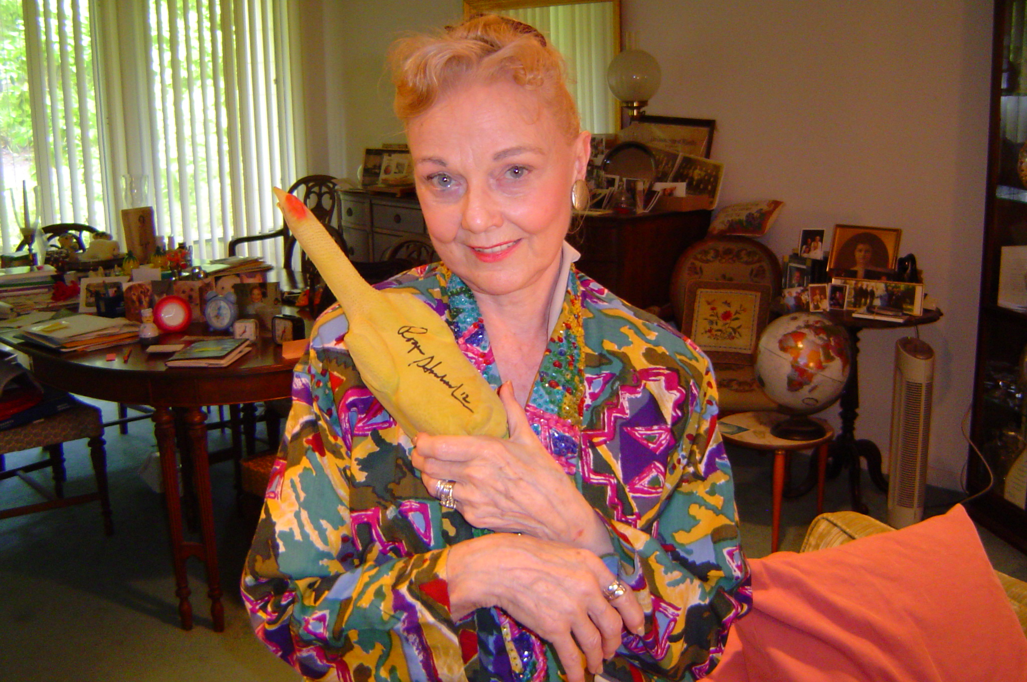 Aunt Judy gets to know the Staubach chicken.