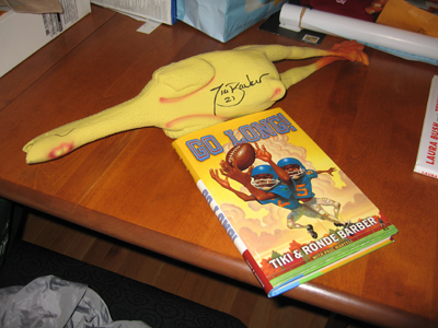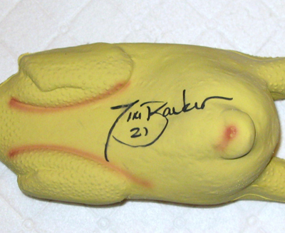 out, "Would you sign this rubber chicken?" I produced the rubber